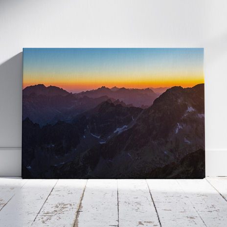 Na tejto snímke zachytenej pri západe slnka 25. júla 2022 z Lomnického štítu počas modrej hodinky dominuje dramatická paleta oranžových a modrastých odtieňov, ktoré hladko splývajú na horizonte. Uprostred kompozície v diaľke sa týči ikonický Kriváň, symbol Slovenska, zatiaľ čo na ľavej strane vyniká majestátny Gerlachovský štít, najvyšší vrch Vysokých Tatier. Fotografia ponúka pôsobivý kontrast medzi ostrými siluetami horských hrebeňov a jemným, pastelovým svetlom súmraku. Tento výnimočný moment bol zachytený počas autorových menín, čo pridáva osobný rozmer k už aj tak fascinujúcemu záberu.